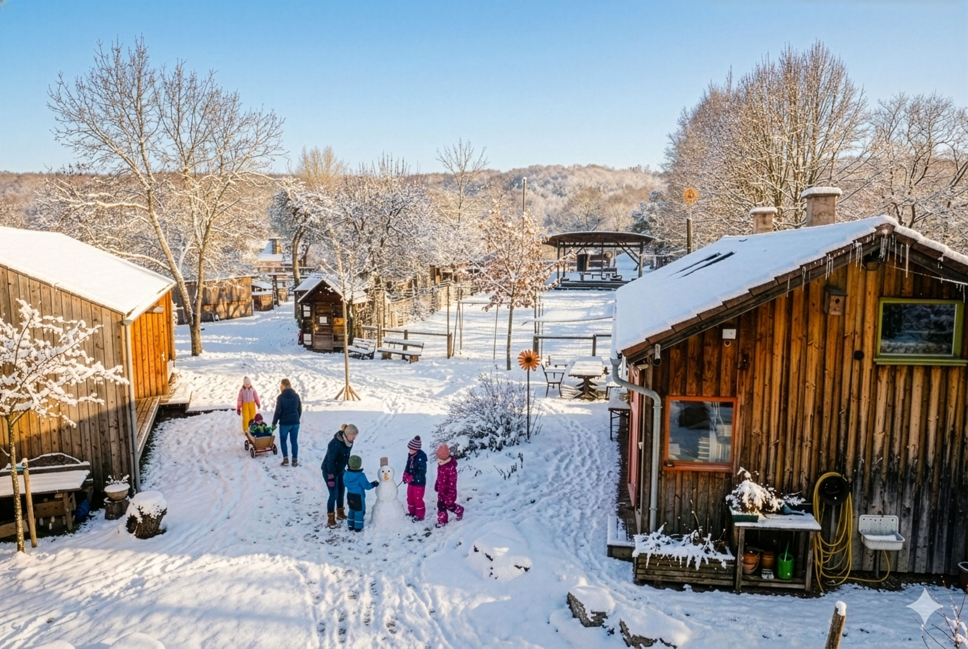 Beim Spielen gibt es keine falschen Ideen - es kommt nur auf die richtige Umgebung an. Ob Feuer machen, Wasserschlacht oder schwerelos am Moonwalk schaukeln - unser Platz gibt Kindern den Raum, den ihre Fantasie benötigt. Und wenn dabei mal eine Hose nass wird, trocknen wir sie am Kamin.